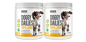 NATURAL DOG JOINT SUPPORT SUPPLEMENTS: Give your dog the support they need to strengthen their joints and maintain joint mobility with Doggy Dailies joint aid supplements! The chews work to maintain mobility and flexibility, lubricate joint stiffness, and support healthy cartilage, bone, ligament, and connective tissue health for overall well-being and support with dog arthritis. Find out why we're the best joint supplements to promote joint health for your dog today!