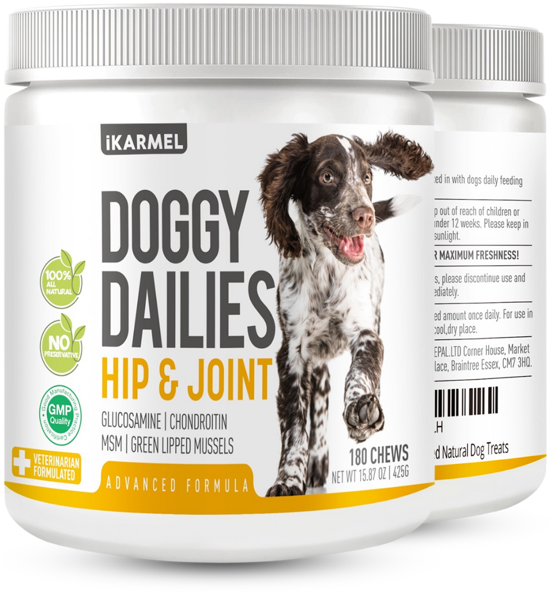 TAILORED FOR YOUR DOG: Each of our dog joint care nutritional supplements products by iKARMEL has a convenient chart on the back so that you can tailor your dog's supplement intake to the size of your pet and ensure the best results for your four-legged companion's joint health. Learn how to look after your dog's joints.